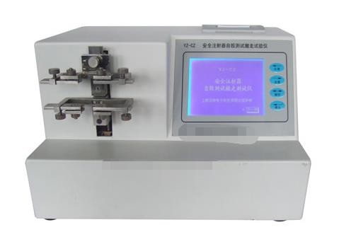 It adopts 5.7 inch (120 × 90) single color LCD touch screen and Chinese menu display. Nominal specification, test load, print, test, uplink, downlink, time, calibration. The menu on the LCD screen is controlled by the keyboard, and the test data are printed on the aircraft. The safety and self destruction reliability of the tested syringe can be automatically judged. The anti start pull and test time curve are displayed in real time. The maximum anti start pull of the syringe for airborne printing test is also shown. This machine has two test methods: one is to set the load and test time to prevent the syringe from restarting; the other is to directly apply reaction force on the syringe core until it is damaged. In other words, the simulation test is mainly conducted to prevent the safety syringe from being started again. The test method fully meets the requirements of appendix B.1 of iso7886-4 standard.